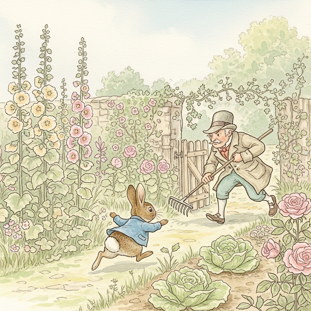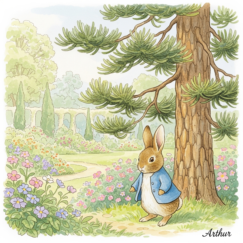 Once upon a time, four little Rabbits named Daisy, Bella, Oliver, and Arthur lived under a big fir tree. Their mother warned them: "Go to the fields, but never enter Mr. McGregor's garden!"