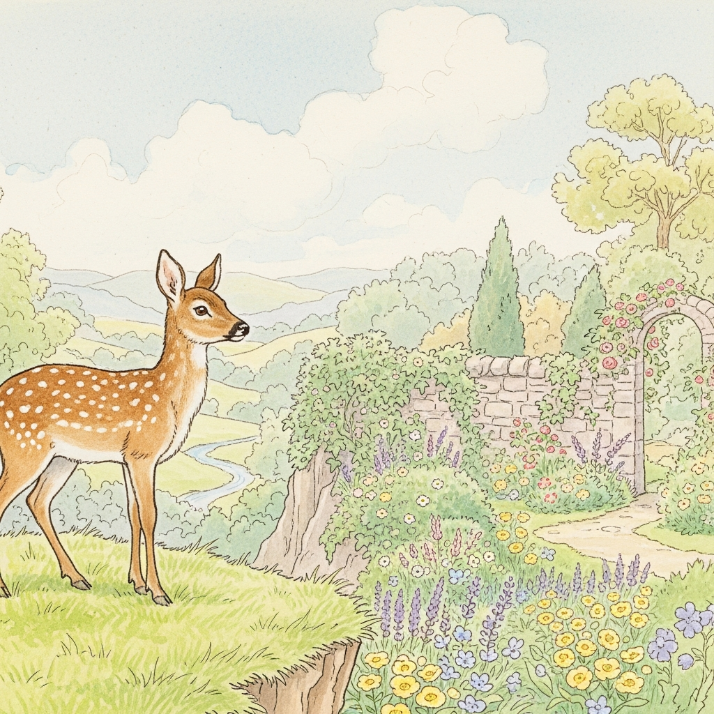 Arthur didn't know the way home. He met a white cat and a robin, but they couldn't help him. The garden felt like a massive maze.