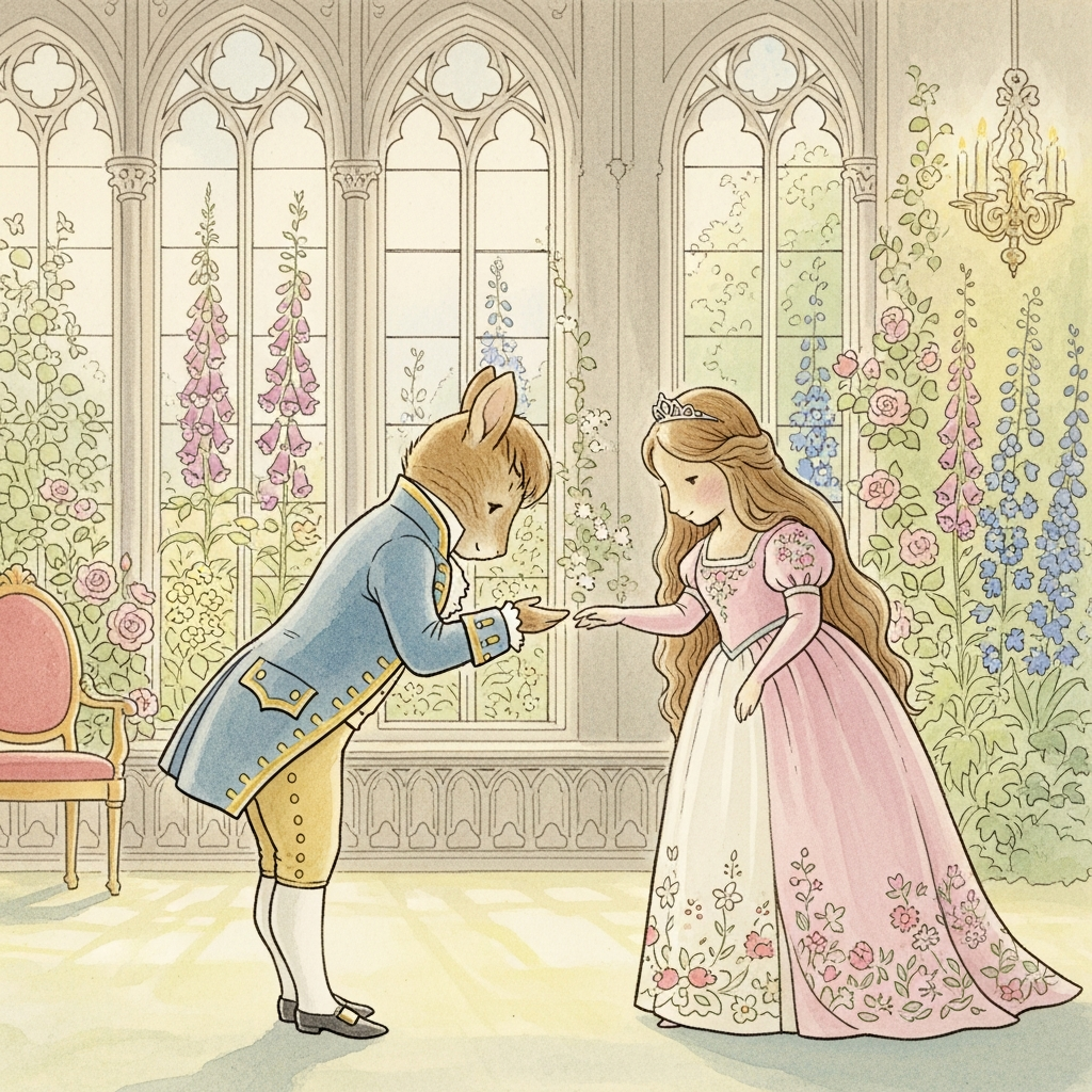 An invitation arrived for a grand ball at the palace! Cinderella wanted to go, but her sisters tore her dress and left her crying in the garden.